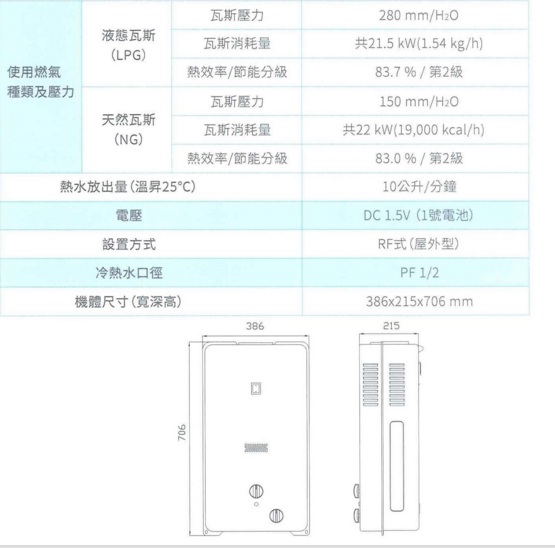 櫻花牌GH1021(屋外型)10公升(公寓型) 抗風型熱水器