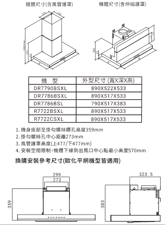 櫻花牌DR7796SXL歐化除油煙機-渦輪變頻 智能風控系列(90公分)