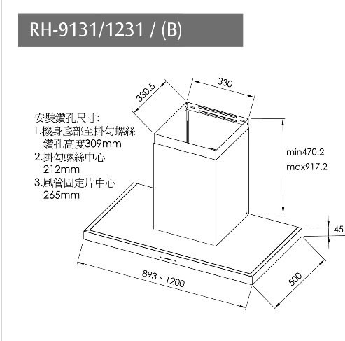 林內牌RH-9131(B)(烤漆黑)倒T式排油煙機