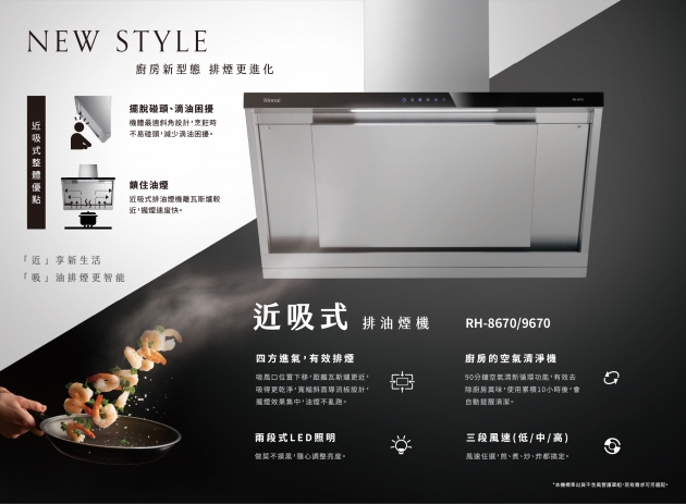 林內牌RH-9670 RH-8670近吸式排油煙機(風管護罩另購)