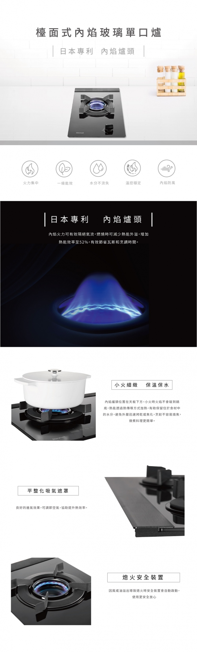 林內牌RB-N2611G(B)內焰玻璃台面瓦斯爐