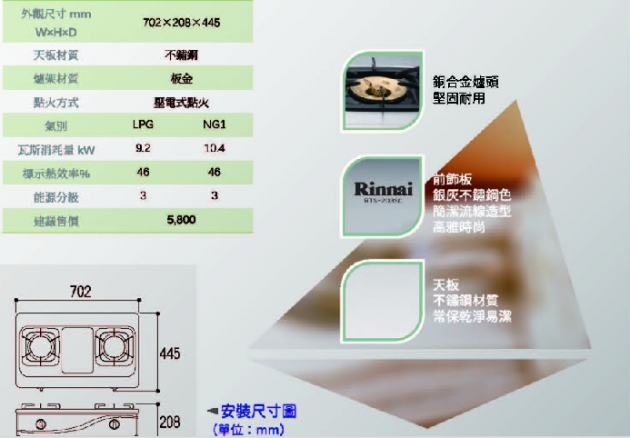 林內牌瓦斯爐RTS-203SC瓦斯台爐