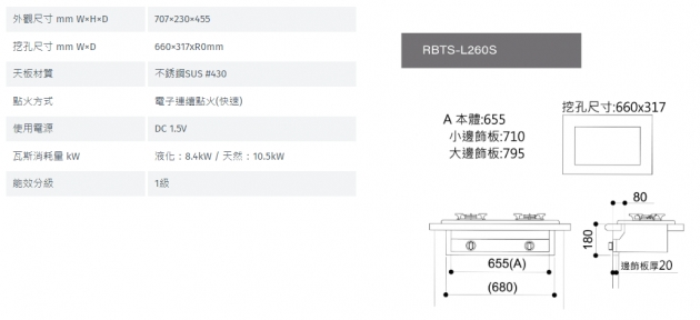林內牌RBTS-L260S彩焱(崁入式)瓦斯爐
