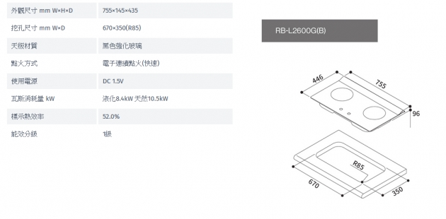 林內牌RBTS-L260S彩焱(崁入式)瓦斯爐