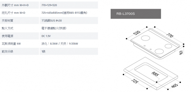 林內牌RB-L2700S彩焱(不銹鋼面)瓦斯爐