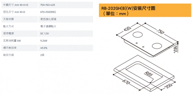 林內牌防漏型玻璃台面瓦斯爐RB-202GH
