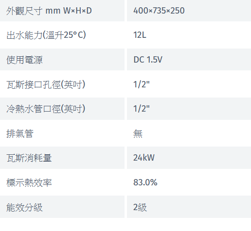 12L/min出水量(溫升25度條件)