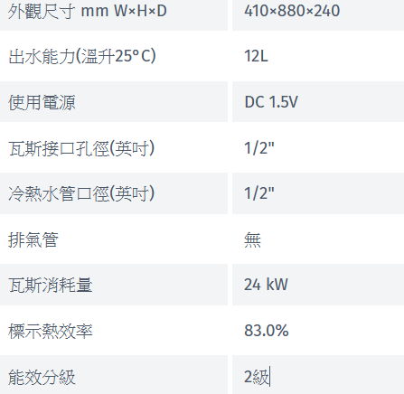 2L/min出水量(溫升25度條件)
