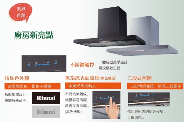 林內牌RH-T9200A倒T式按壓滑轉設計排油煙機