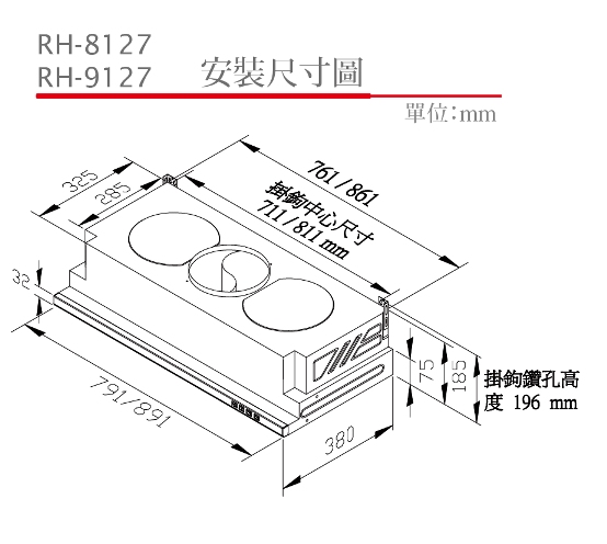 林內牌RH-8127☆RH-9127 ☆隱藏式(電熱除油)除油煙機