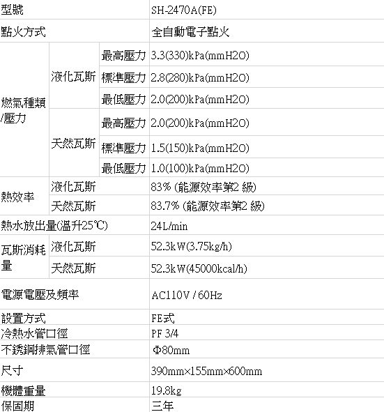 櫻花牌SH2480(日本)數位恆溫強制排氣熱水器