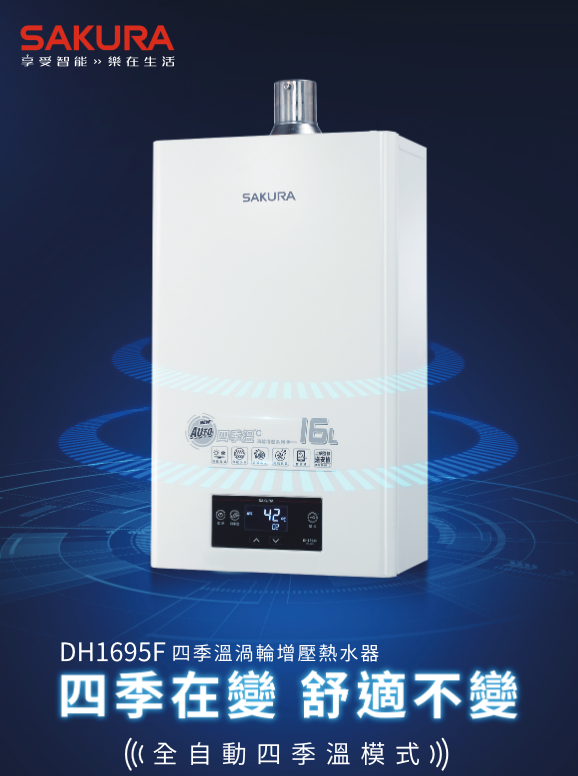 櫻花牌DH1695F16公升☆渦輪增壓智能☆(四季溫)數位恆溫強制排氣☆熱水器
