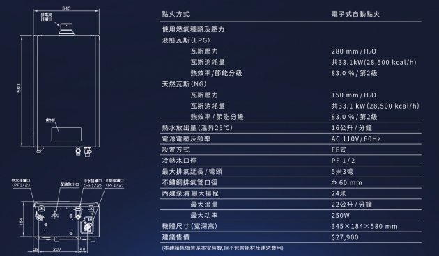 林內牌強排熱水器