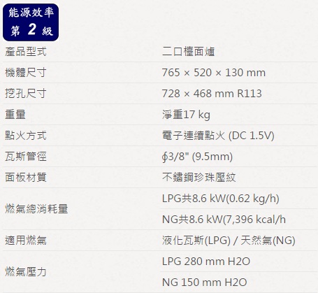 櫻花牌G2623S檯面式二口(珍珠壓紋面)瓦斯爐
