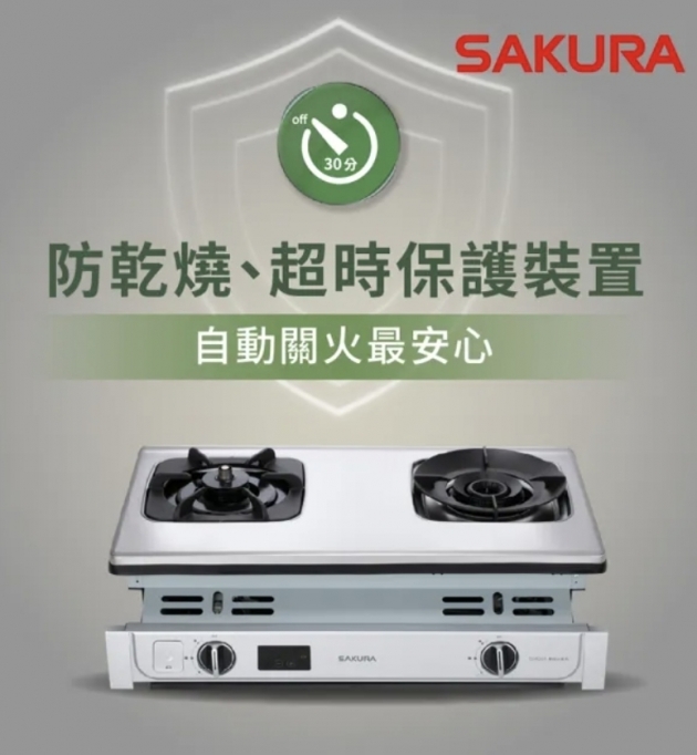 櫻花牌崁入式瓦斯爐G6920A(智動關)雙炫火