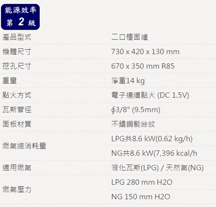 櫻花牌G2826G二口高效檯面爐