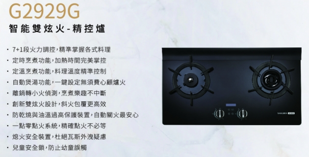 櫻花牌G2929G(智能)玻璃檯面爐(防乾燒+定時)