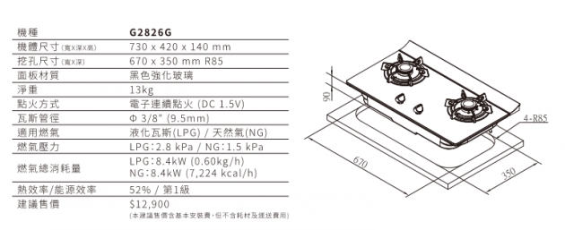 櫻花牌G2826G二口高效檯面爐