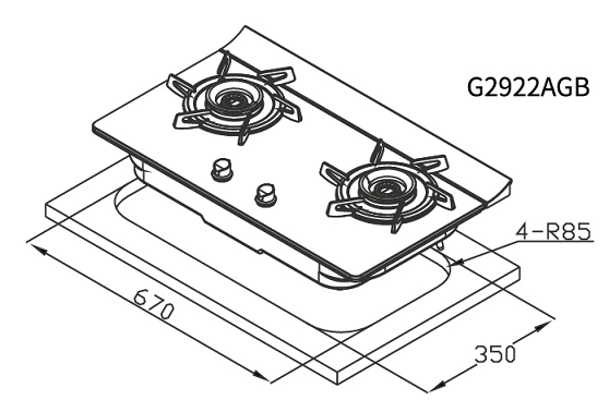 670 x 350 mm R85