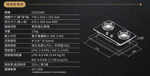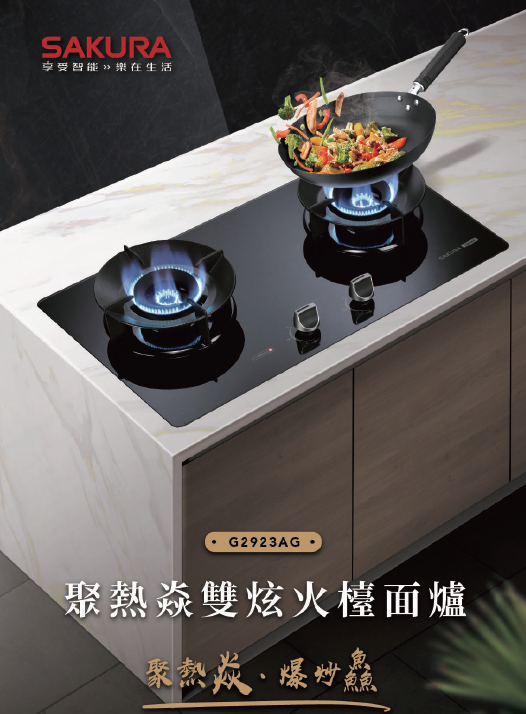 櫻花牌G2923AG(聚熱焱)雙炫火二口檯面爐