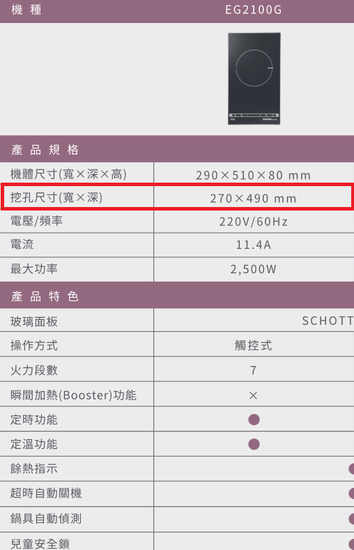 櫻花牌EG2100G單口IH感應爐